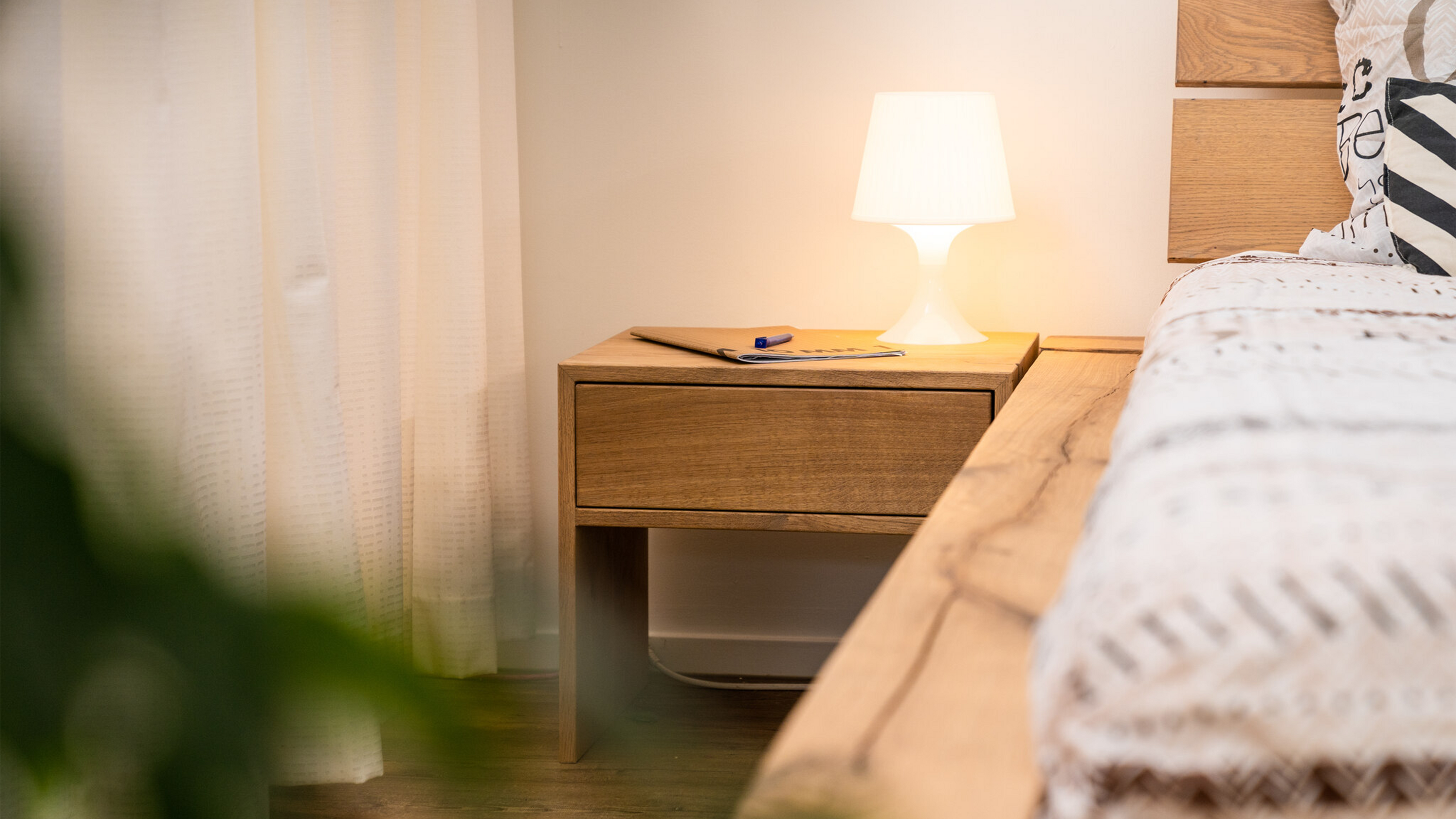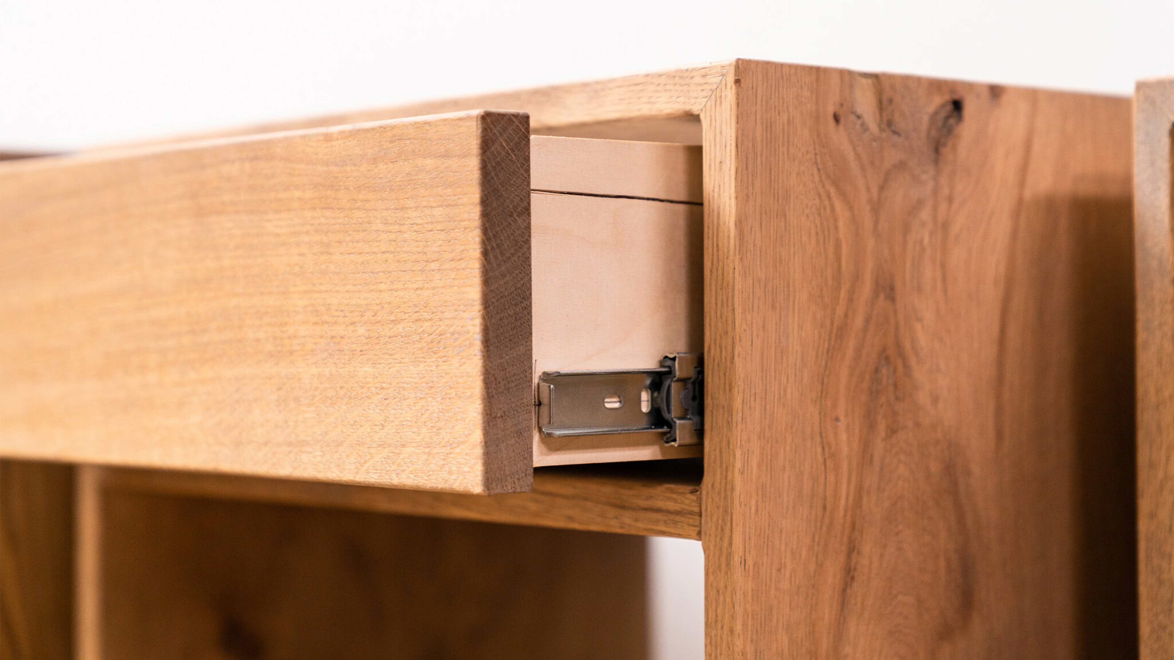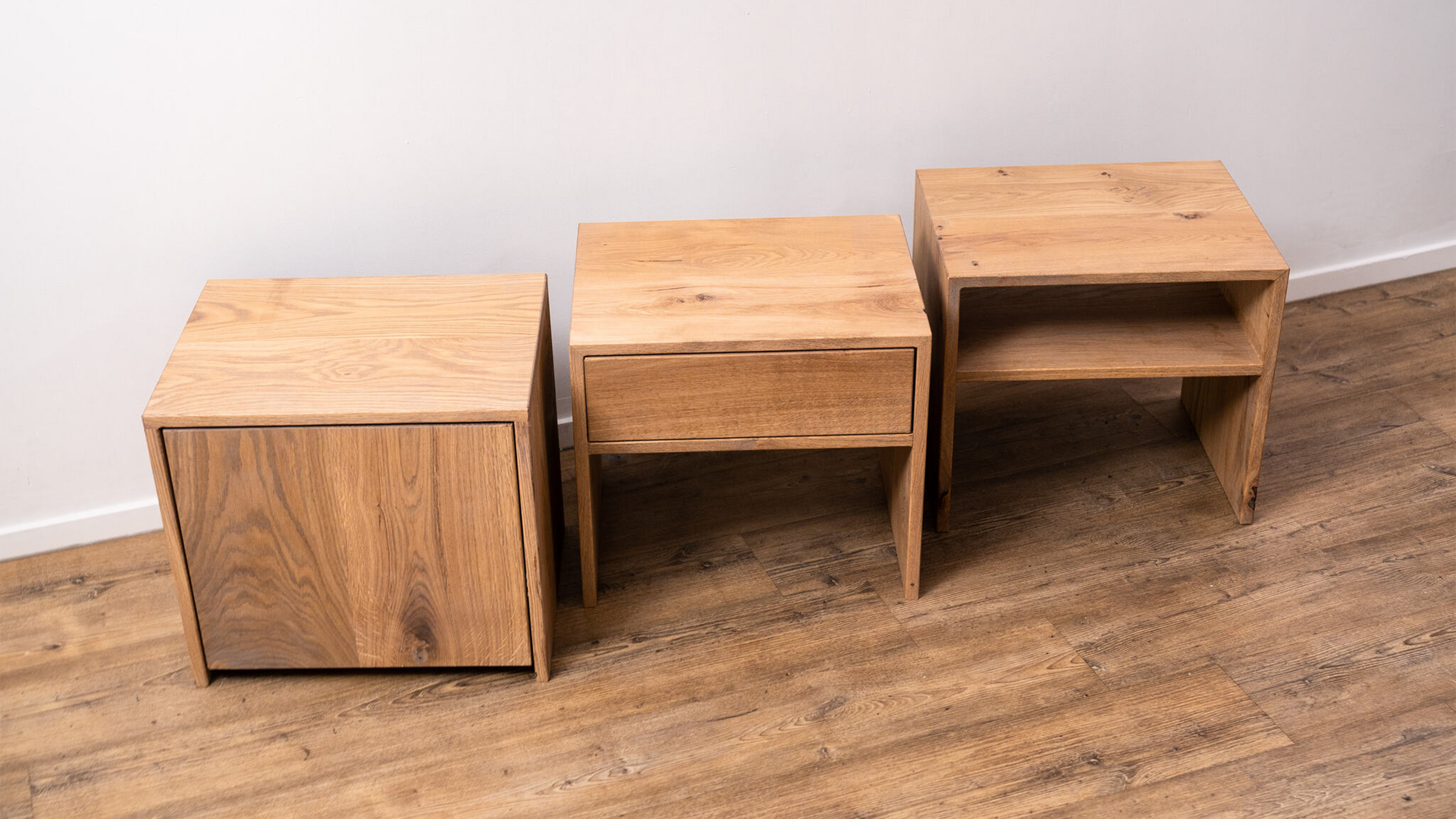 Dit eiken houten nachtkastje heeft een lade. Dit geeft een moderne uitstraling geeft en kan gebruikt worden om gemakkelijk spullen op te bergen.