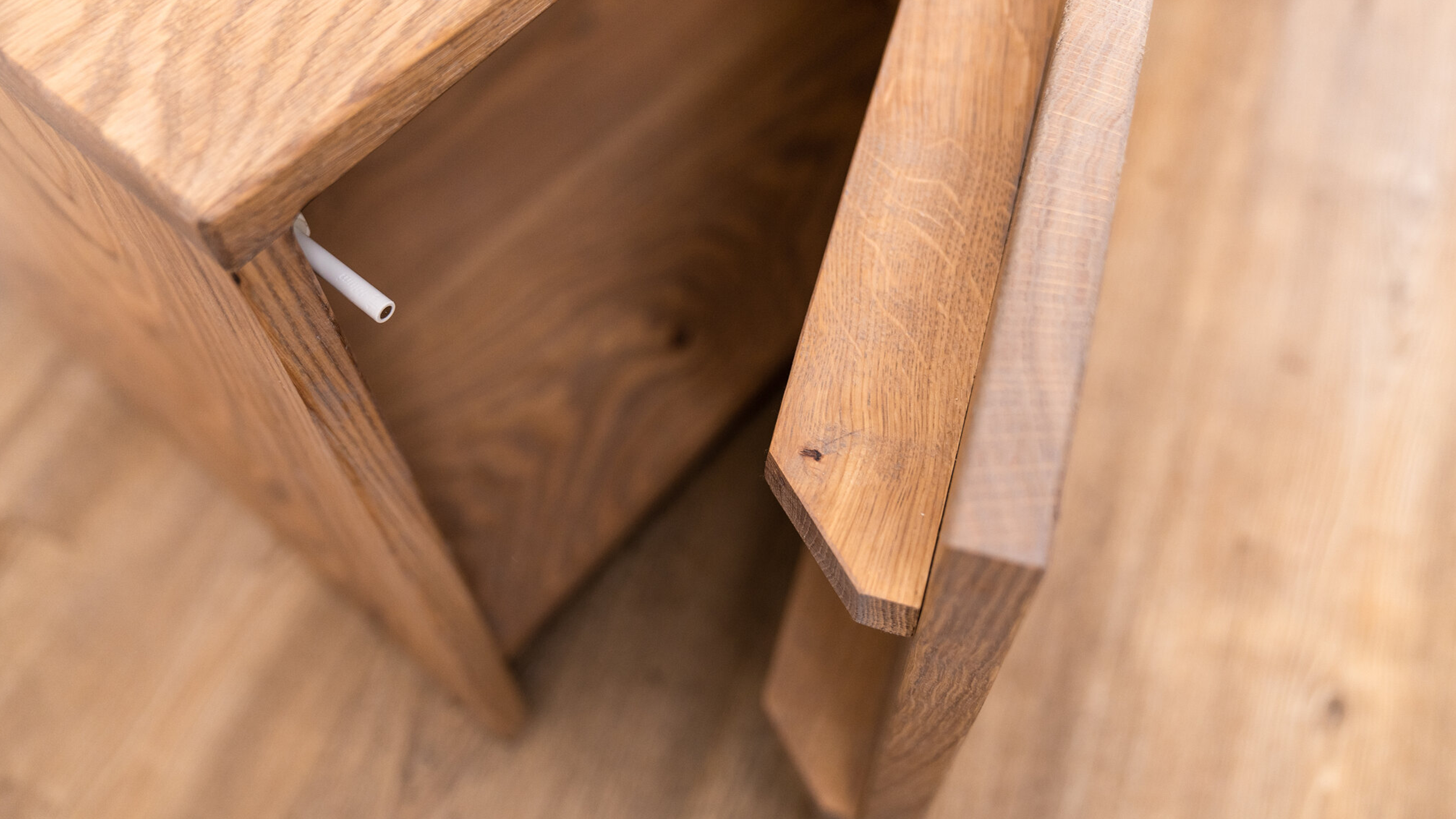 Dit eiken nachtkastje heeft een deurtje, hierdoor ontstaat er voor opbergruimte in het kastje. Door de moderne uitstraling kan het prachtig gecombineerd worden elk bed!